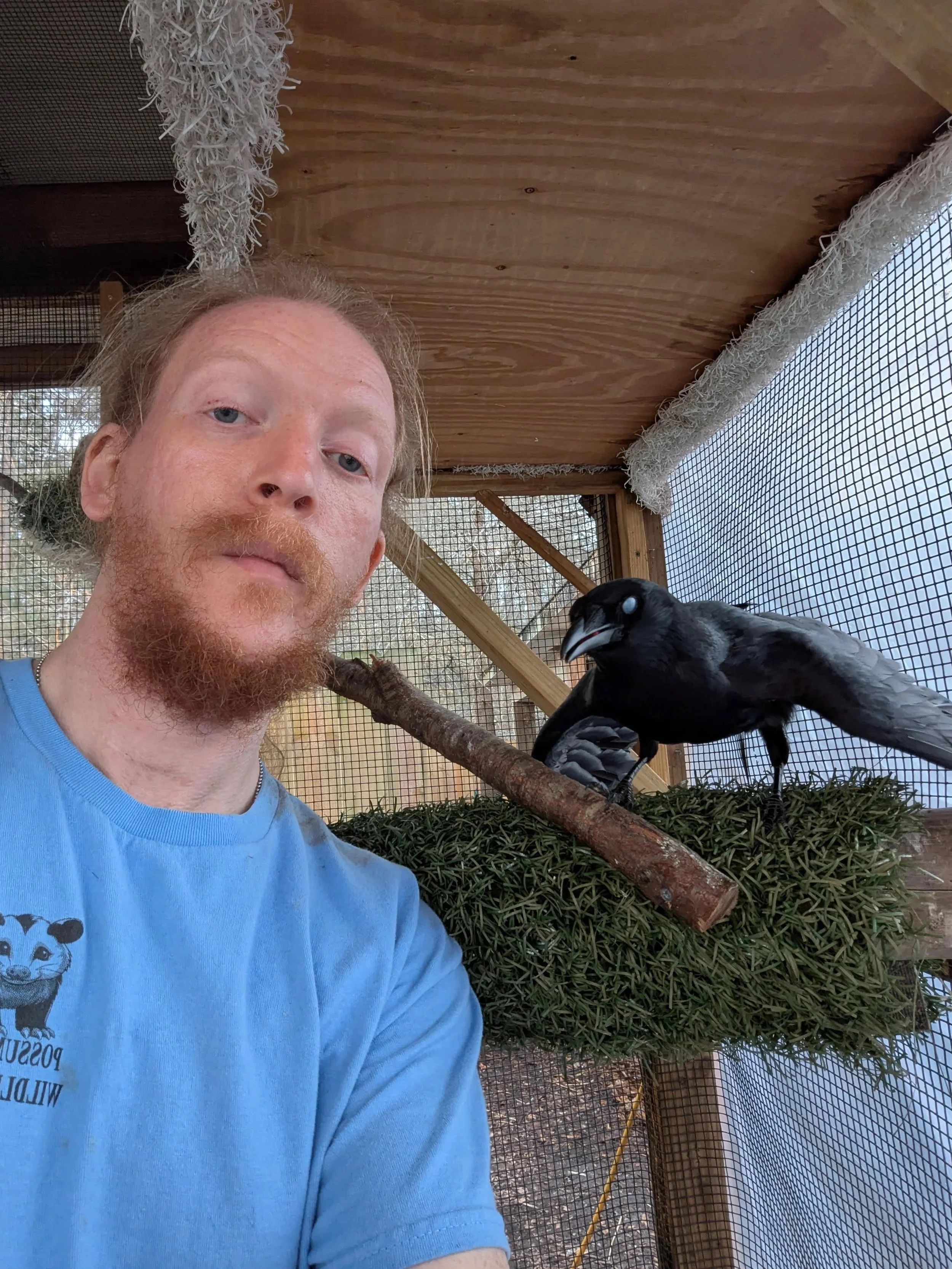 I've lived in North Carolina most of my life, but I'm originally from Michigan's Upper Peninsula, where I learned my appreciation for wildlife and nature. I started volunteering at Possumwood Acres in June 2025, and discovered that wildlife rehabilitation was the kind of purpose in life I was looking for and completed the internship program before becoming a staff member in November 2025. I'm currently an apprentice rehabilitator, and particularly enjoy working with the crows and raptors.